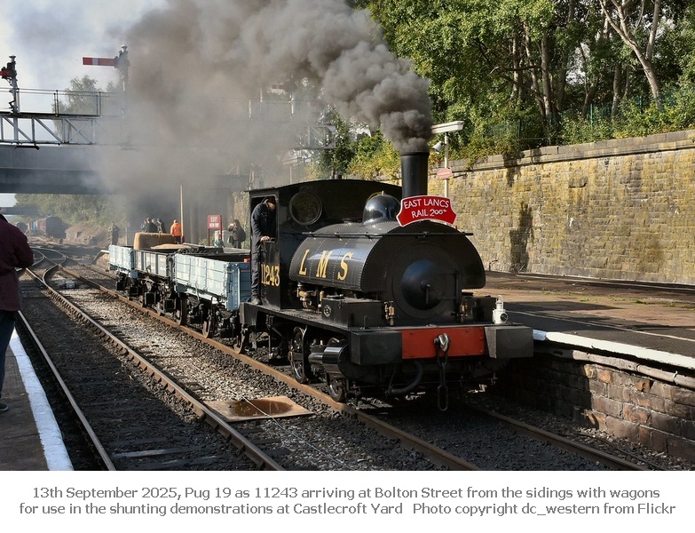 On 13th and 14th September our Pug 19 as 11243 and Saddletank 752 as 11456 operated on the East Lancashire Railway throughout the weekend as part of the Railway200 celebrations with the return of Furness Railway loco 20. Friday 12th September featured a Mayoral visit, a 3P20 Parcels Group photo charter and events for schools.