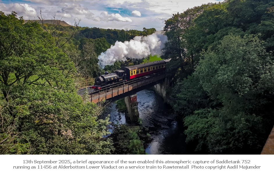 The first week of October saw Saddletank 752 as 11456 used on a ‘Mayor’s Special’ between Bury and Rawtenstall, our Third 6-wheel carriage 1507 on a special on the Worth Valley featuring loco FENCHURCH visiting from the Bluebell.
